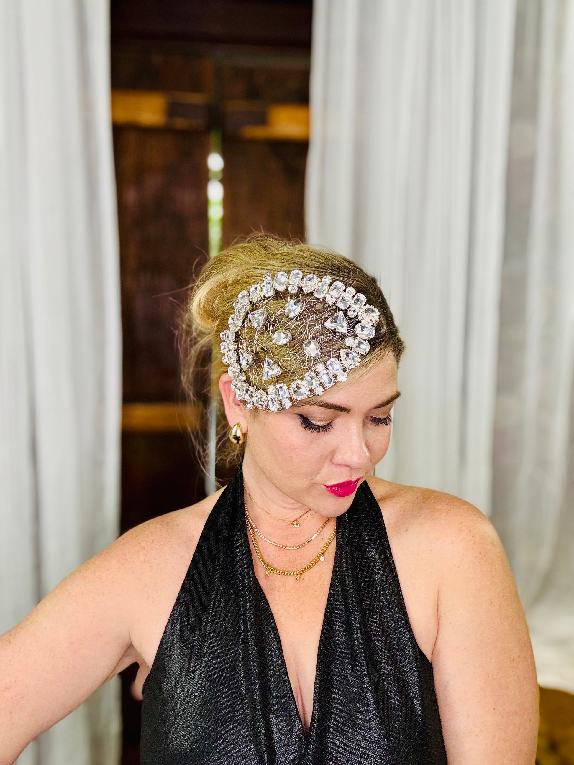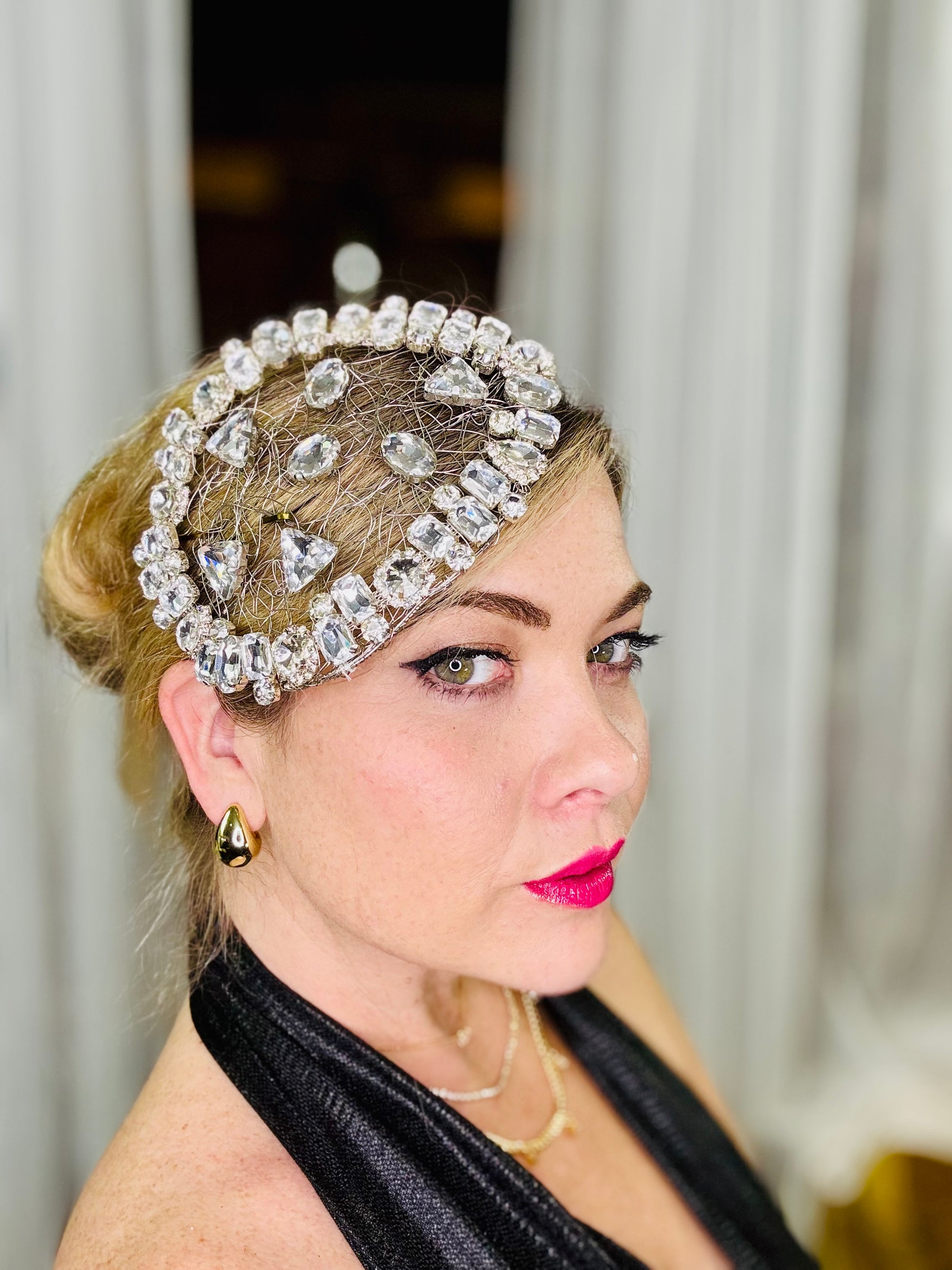 GRETA is a Glamorous Rhinestone Headpiece that can be worn many ways. Perfect to add a little 'Bling' to your outfit. She is One of a Kind and all Handmade.